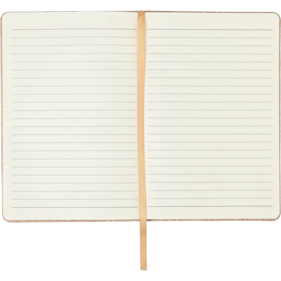 Notatnik (ok. A5, 96 kartek w linie), okładka PU z korkowym wzorem, elastyczna opaska do zamykania oraz tasiemka zakładkowa