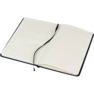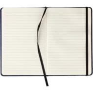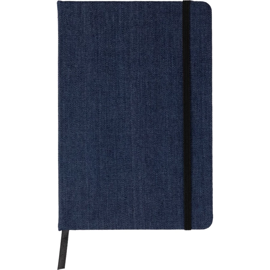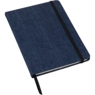 Notatnik ok. A5, posiada 80 stron w linie, elegancka okładka, tasiemka zakładkowa umożliwia wygodne zaznaczanie ostatniej strony lub ważniejszych notatek, zmieści się do szkolnego plecaka, dodatkowe zamknięcie w postaci dopasowanej kolorystycznie elastycznej opaski, produkt wykonany z denimu