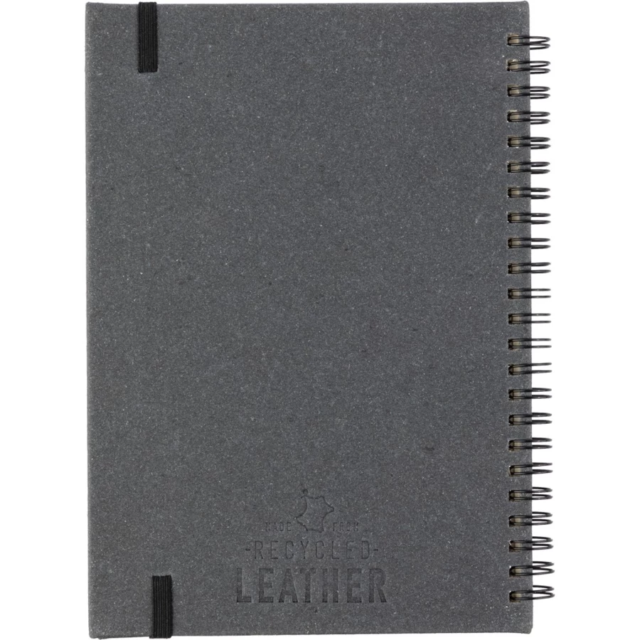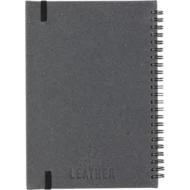 Notatnik ok. A5, posiada 80 stron w linie, miękka okładka, tasiemka zakładkowa umożliwia wygodne zaznaczanie ostatniej strony lub ważniejszych notatek, zmieści się do szkolnego plecaka, produkt wykonany ze skóry z recyklingu
