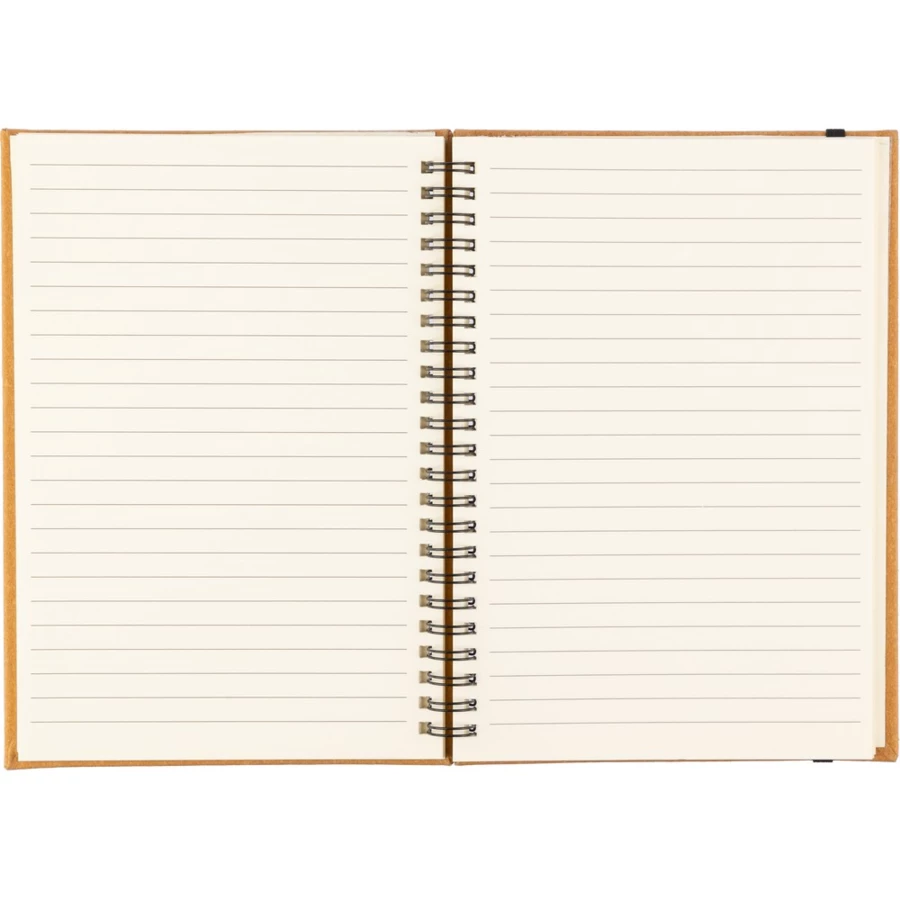 Notatnik ok. A5, posiada 80 stron w linie, miękka okładka, tasiemka zakładkowa umożliwia wygodne zaznaczanie ostatniej strony lub ważniejszych notatek, zmieści się do szkolnego plecaka, produkt wykonany ze skóry z recyklingu
