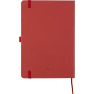 Notatnik w formacie ok. A5, posiada 80 stron w linie drukowanych tuszem sojowym, tasiemka zakładkowa umożliwia wygodne zaznaczanie ostatniej strony lub ważniejszych notatek, dodatkowe zamknięcie w postaci dopasowanej kolorystycznie elastycznej opaski, zmieści się do szkolnego plecaka, notatnik posiada papierową okładkę Favini pochodzącą z Włoch, ikona surowca na produkcie, produkt wykonany z kartonu i resztek produkcyjnych (04 - lawenda, 05 - wiśnia, 06 - cytrusy, 18 - migdały, 25- winogrona) oraz papieru 70 g/m²