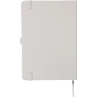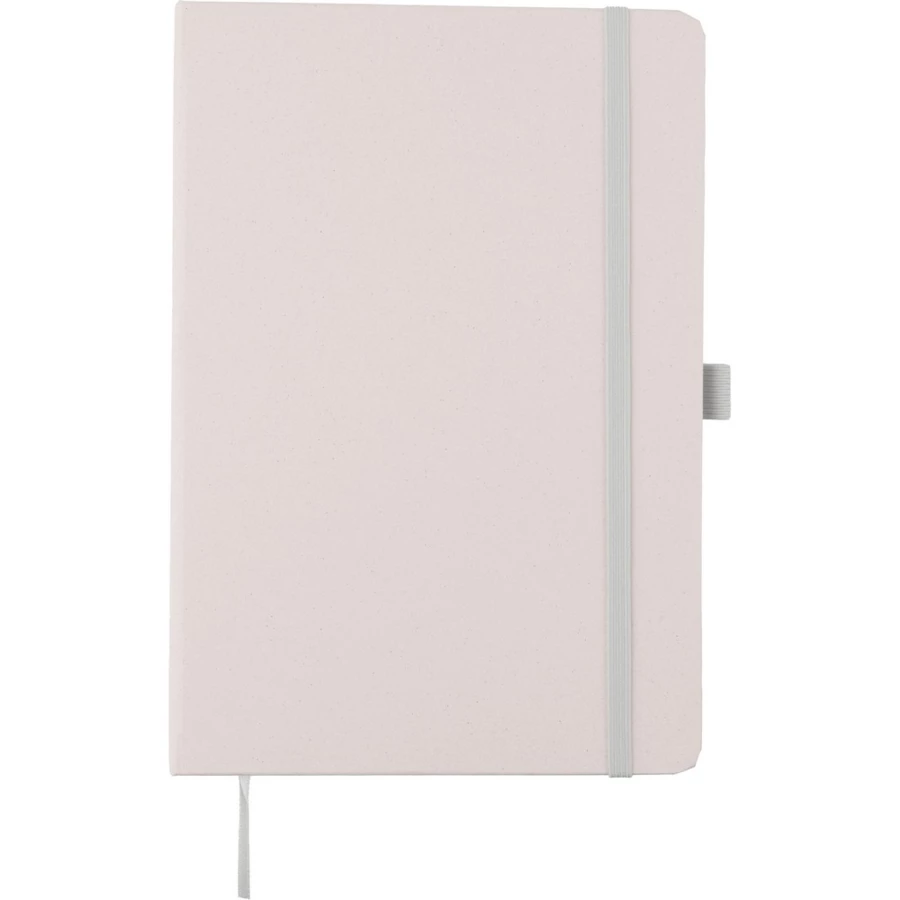 Notatnik w formacie ok. A5, posiada 80 stron w linie drukowanych tuszem sojowym, tasiemka zakładkowa umożliwia wygodne zaznaczanie ostatniej strony lub ważniejszych notatek, dodatkowe zamknięcie w postaci dopasowanej kolorystycznie elastycznej opaski, zmieści się do szkolnego plecaka, notatnik posiada papierową okładkę Favini pochodzącą z Włoch, ikona surowca na produkcie, produkt wykonany z kartonu i resztek produkcyjnych (04 - lawenda, 05 - wiśnia, 06 - cytrusy, 18 - migdały, 25- winogrona) oraz papieru 70 g/m²