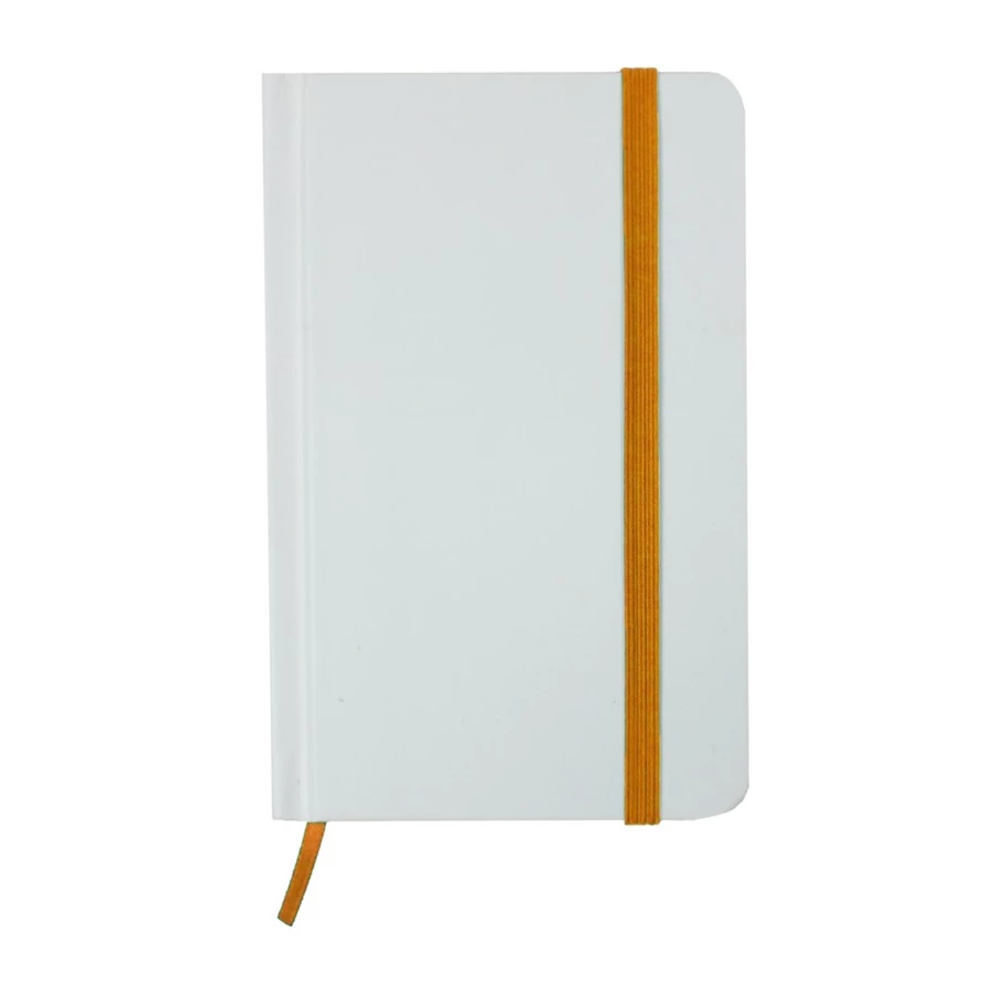 Notatnik (ok. A6, 80 pustych kartek), tasiemka zakładkowa, specjalna okładka pod znakowanie full colour, elastyczna opaska do zamykania