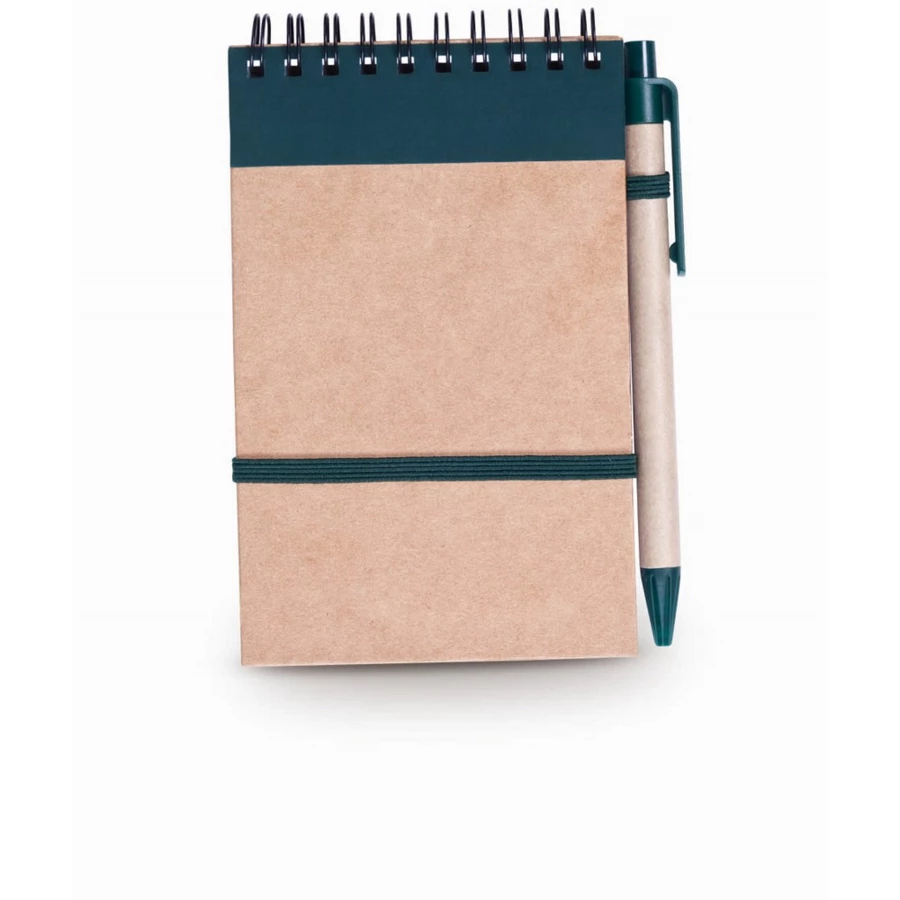 Notatnik (ok. A6, 70 kartek w linie) z długopisem, elastyczna opaska do zamykania, twarda okładka, spiralne bindowanie