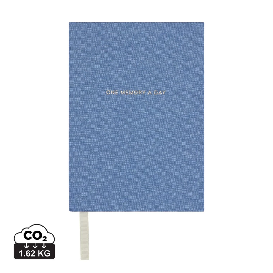 Notatnik A5, pamiętnik, twarda okładka, tasiemka zakładkowa, umożliwia zapisywanie jednego wspomnienia dziennie przez okres trzech lat, wykonany z papieru z recyklingu z certyfikatem RCS, całkowita zawartość materiałów z recyklingu obliczona w oparciu o wagę całkowitą przedmiotu: 83%