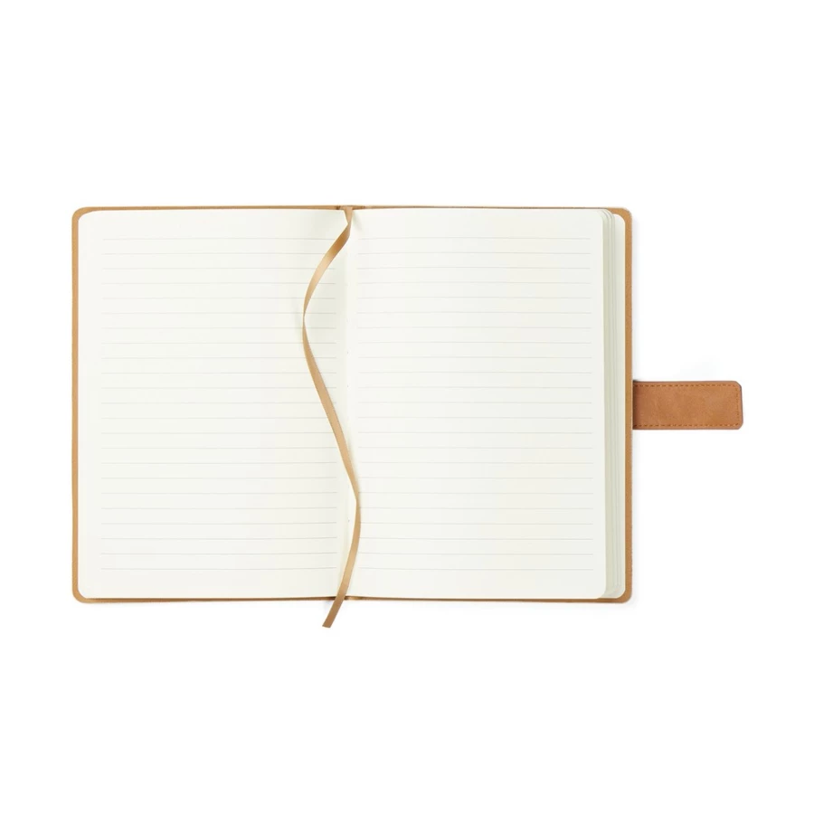 Notatnik (80 białych kartek 80 g/m2 w linie), opaska z PU, zamknięcie na magnes, wykonany z materiałów pochodzących z recyklingu z certyfikatem RCS, całkowita zawartość materiałów z recyklingu obliczona w oparciu o wagę całkowitą przedmiotu: 65%