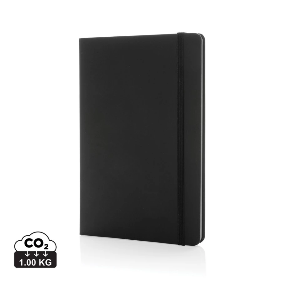 Notatnik A5 (80 białych kartek w linie o gramaturze 120 g/m2), okładka wykonana z papieru kraftowego z certyfikatem FSC®, tasiemka zakładkowa, strony z papieru kamiennego, w opakowaniu z papieru kraftowego z certyfikatem FSC® mix, ślad węglowy produktu: 1 kg CO2