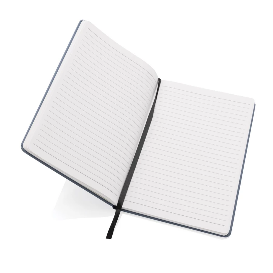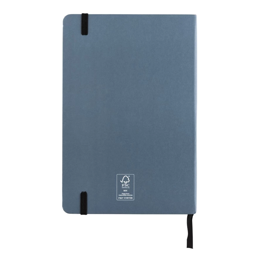 Notatnik A5 (80 białych kartek w linie o gramaturze 120 g/m2), okładka wykonana z papieru kraftowego z certyfikatem FSC®, tasiemka zakładkowa, strony z papieru kamiennego, w opakowaniu z papieru kraftowego z certyfikatem FSC® mix, ślad węglowy produktu: 1 kg CO2