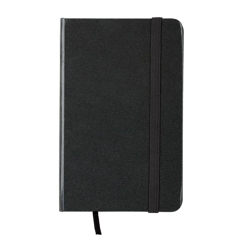 Notatnik w twardej oprawie z elastyczną gumką chroniącą wnętrze. Papier kremowy chamois w kratkę o gramaturze 70 g/m2 o wymiarze 9 x 14 cm, 80 kartek, tasiemka do zaznaczania ostatniej zapisanej strony. Rozmiar kieszonkowy.