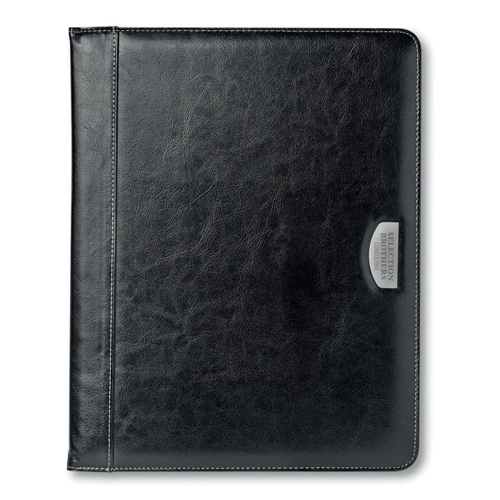 20-kartkowy notes A4 z materiału PU i metalową płytką do nadruku logo.