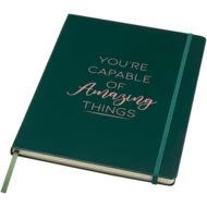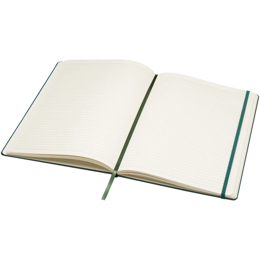 Objęty wzorem zastrzeżonym, klasyczny notatnik A4 z twardą okładką, zamykany na gumkę. Zawiera 80 kartek (80 g/m²) w linie, idealnych do zapisywania i dzielenia się notatkami. Z tyłu ma rozkładaną kieszonkę na małe karteczki. Dołączone etui upominkowe Journalbooks. Karton pokryty papierem imitującym skórę.
