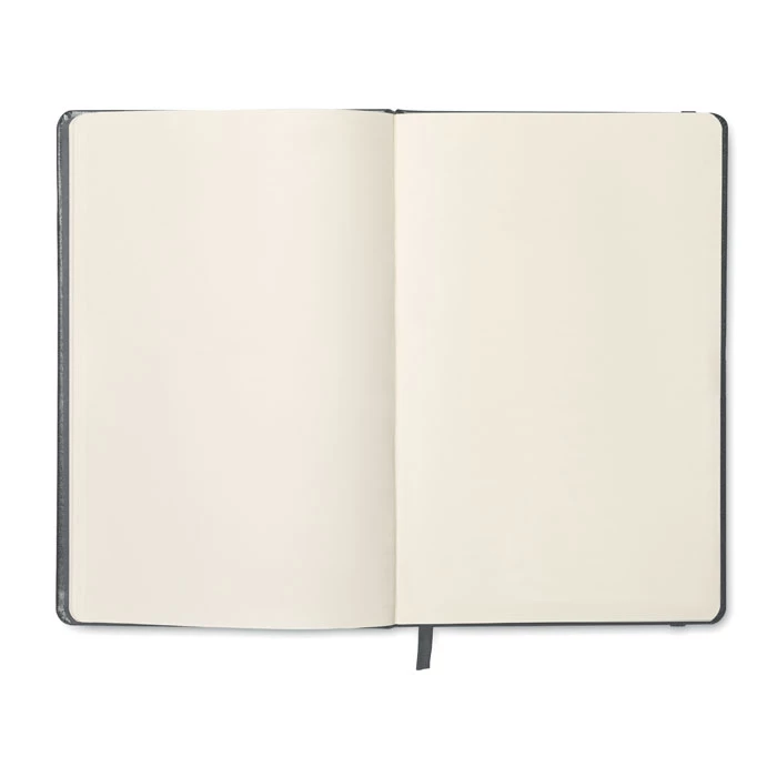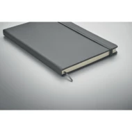 Notes A5 z twardą okładką z PU. 192 gładkie strony z papieru z recyklingu (96 kartek). Dopasowane kolorystycznie elastyczne zamknięcie i tasiemka . FSC®-certified | FSC MIX CREDIT, P7.1, FSC-C213206
