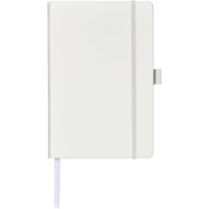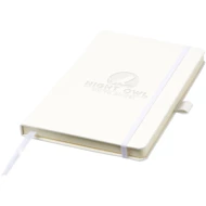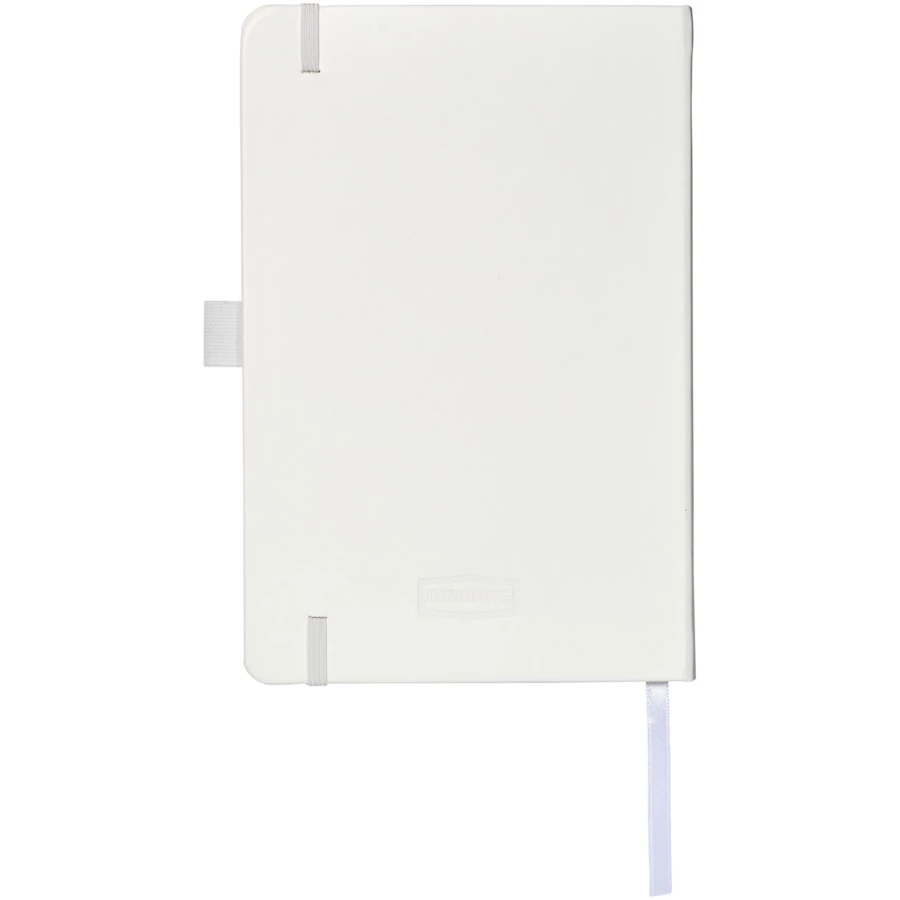 Notatnik skóropodobny z imitacji skóry A5 (14,2 cm x 21,4 cm) z elastyczną gumką, zakładką, pętlą na pióro i harmonijkową tylną kieszenią. Zawiera 96 arkuszy papieru w linie w gramaturze 80 g/m2 i jest oferowany w białej obwolucie typu Journalbook.