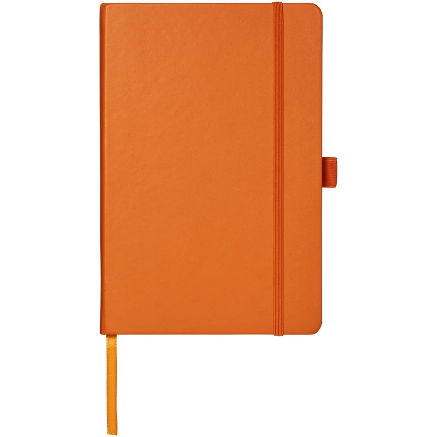 Notatnik skóropodobny z imitacji skóry A5 (14,2 cm x 21,4 cm) z elastyczną gumką, zakładką, pętlą na pióro i harmonijkową tylną kieszenią. Zawiera 96 arkuszy papieru w linie w gramaturze 80 g/m2 i jest oferowany w białej obwolucie typu Journalbook.