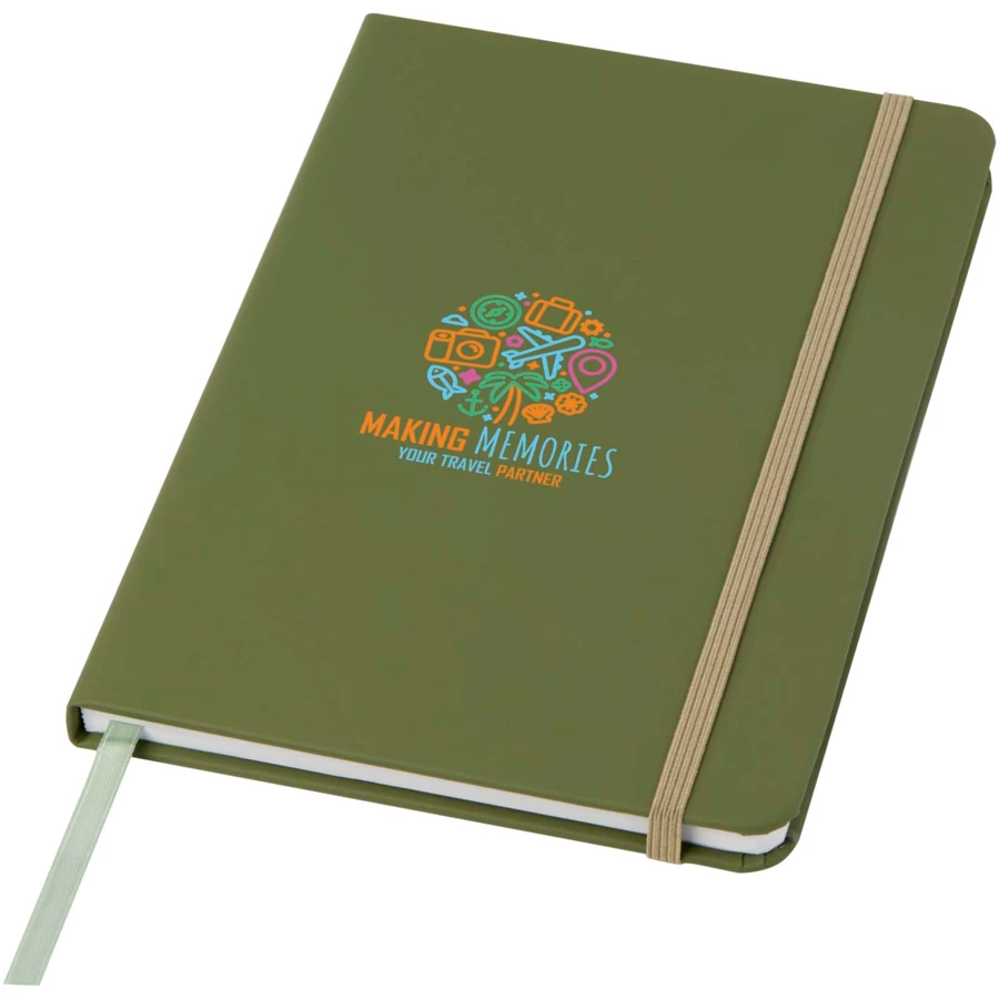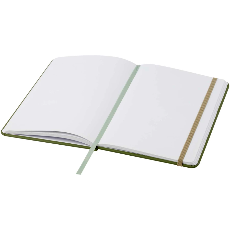 Notes A5 z kolorowym zamknięciem na gumkę i wstążką. Zawiera 96 gładkich kartek (60 g/m2).
