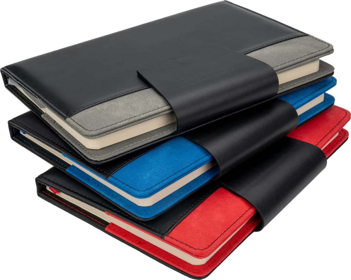 80 kartkowy notes o formacie A5, w linie, w okładce wykonanej z PU pochodzącego z recyklingu, z magnetycznym zamknięciem.
