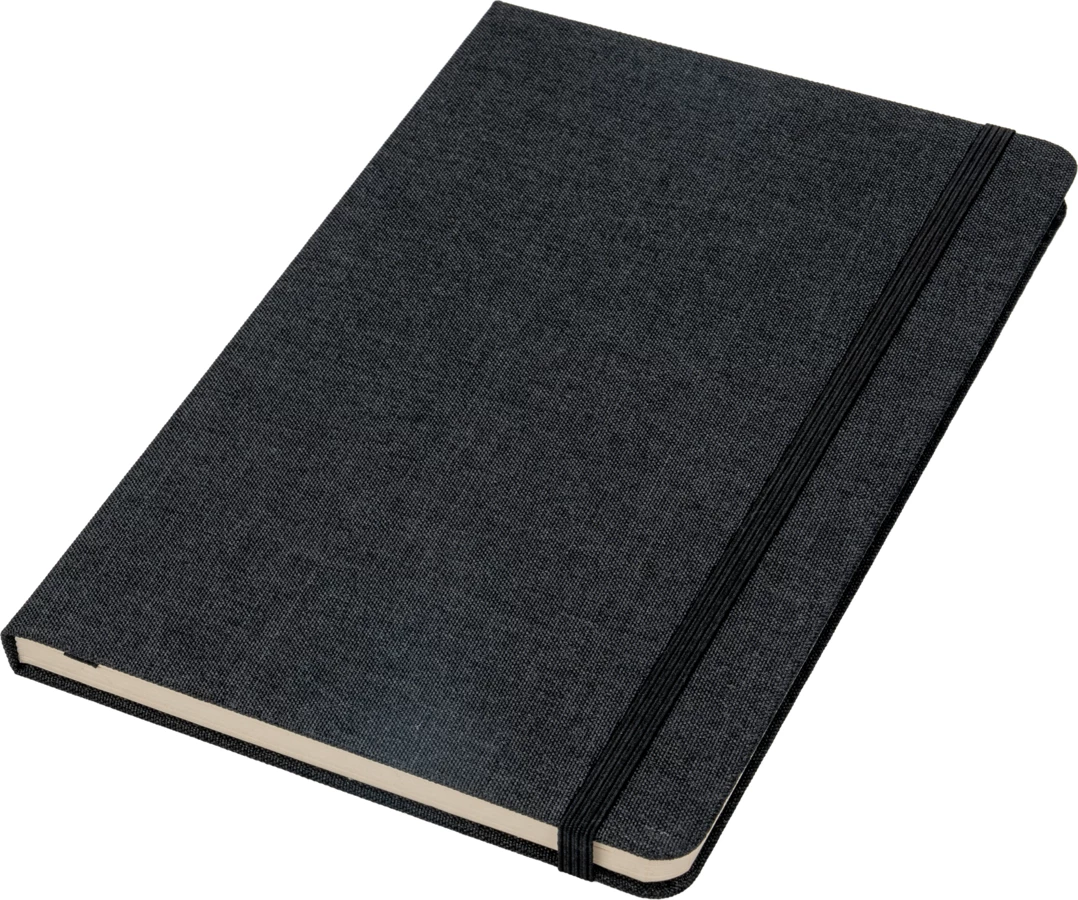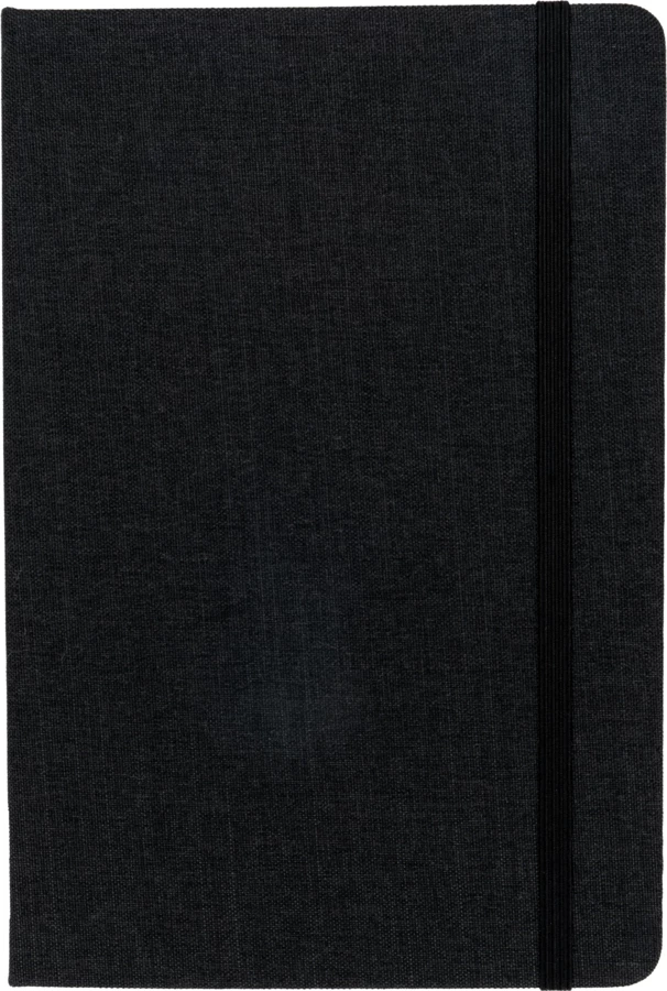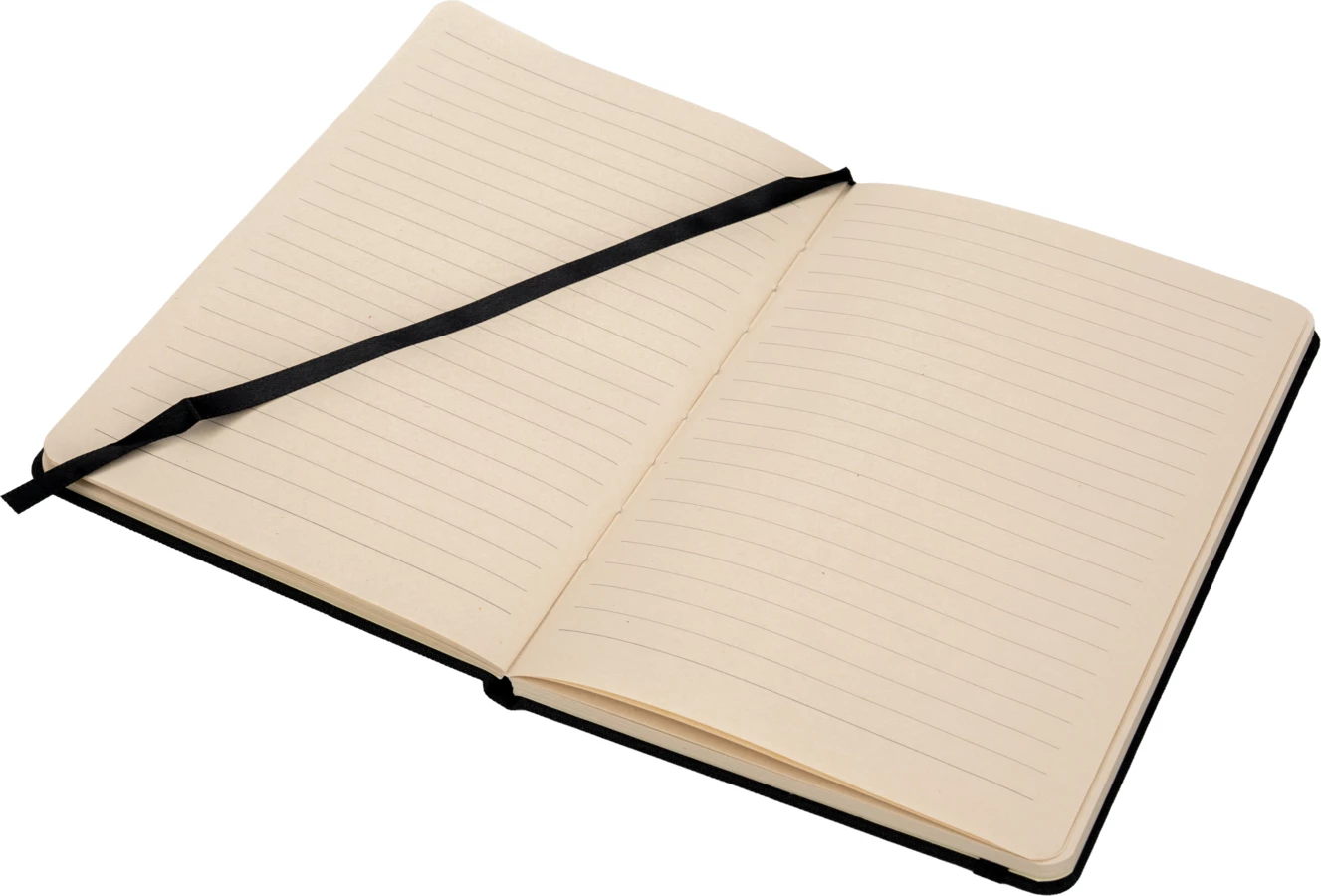 Notes A5 w linie, z 80 kartkami z trzciny cukrowej, z okładką z RPET, zakładką i zamknięciem na gumkę.