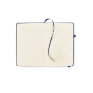 Notatnik A5 z okładką wykonaną w 70% ze skóry pochodzącej z recyklingu i w 30% z lateksowego PU. Obwoluta. 192 stron w linie na papierze z recyklingu (96 arkuszy). Dopasowany elastyczny bawełniany pasek i uchwyt na długopis.