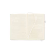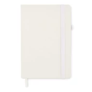 Notatnik A5 z okładką wykonaną w 70% ze skóry pochodzącej z recyklingu i w 30% z lateksowego PU. Obwoluta. 192 stron w linie na papierze z recyklingu (96 arkuszy). Dopasowany elastyczny bawełniany pasek i uchwyt na długopis.