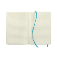 Notatnik A5 z miękką okładką z PU z recyklingu. 160 stron w linie z papieru z recyklingu (80 kartek). Dopasowany elastyczna opaska i zakładka z tasiemki. Rozszerzana kieszeń wewnętrzna z tyłu. FSC®-certified | FSC MIX CREDIT, P7.1, FSC-C213206