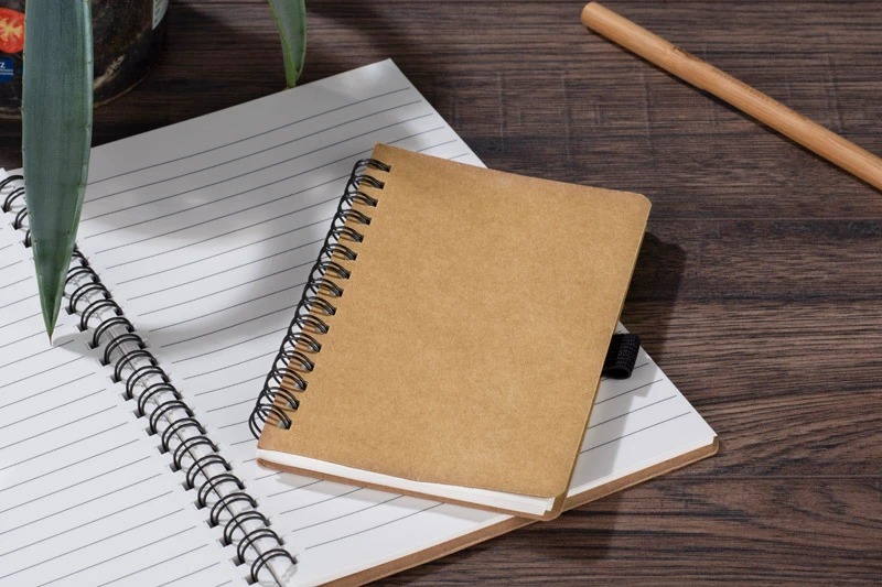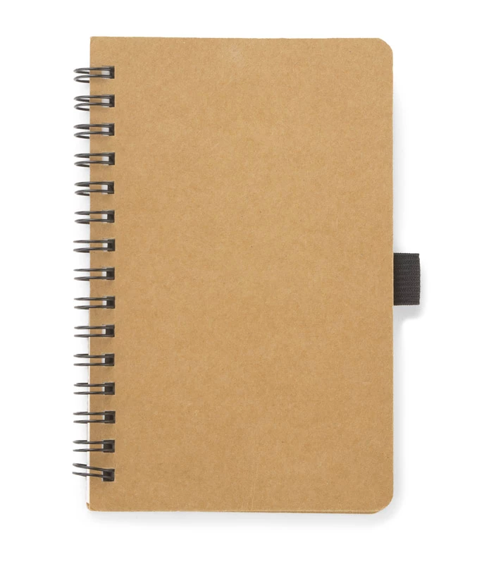 Klasyczny notes na spirali w papierowej, brązowej okładce wraz z miejscem na długopis. Kartki w notesie wykonane są z papieru kamiennego. Papier ten jest wyjątkowo wytrzymały i odporny na wilgoć. Posiada 60 kartek w linie, format A6. Zapakowany w woreczek biodegradowalny.