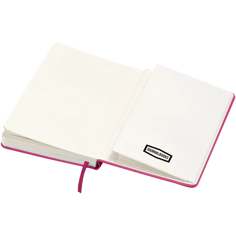 Objęty wzorem zastrzeżonym, klasyczny notatnik A5 z twardą okładką, zamykany na gumkę. Zawiera 80 kartek (80 g/m²) w linie, idealnych do zapisywania i dzielenia się notatkami. Z tyłu ma rozkładaną kieszonkę na małe karteczki. Dołączone etui upominkowe Journalbooks.