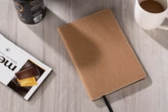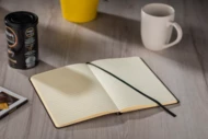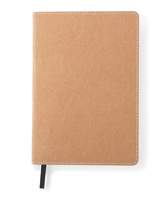 Notes ELIN A5 wykonany jest z papieru. Stworzony w całkowicie ekologiczny sposób, zachowując żywotność lasów. Papier okładki jest delikatnie pognieciony, dzięki czemu notes wygląda bardzo oryginalnie, ciekawie i naturalnie. Okładka obszyta jest białą nitką na brzegach, a wewnątrz notesu została umieszczona czarna wstążeczka pełniąca funkcję zakładki. Notes zawiera 80 kartek w linie.