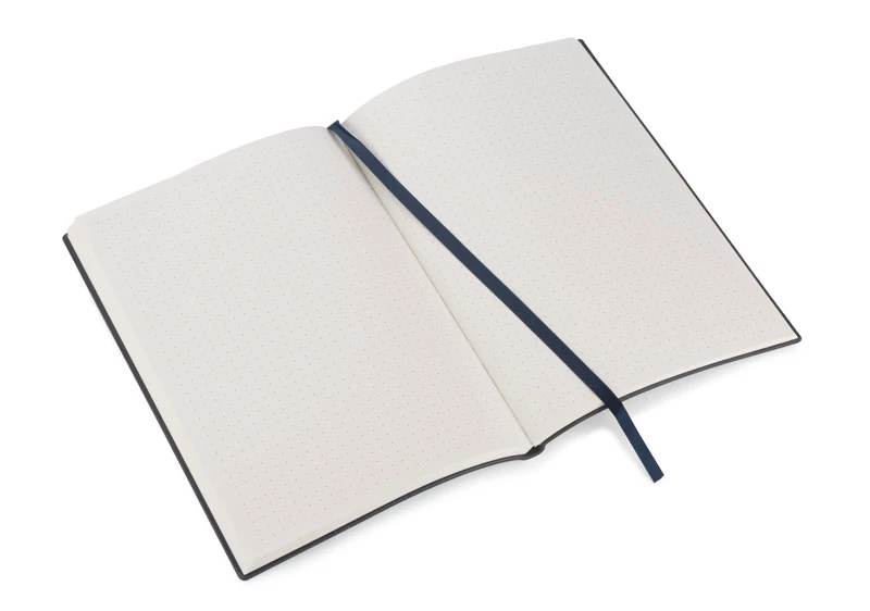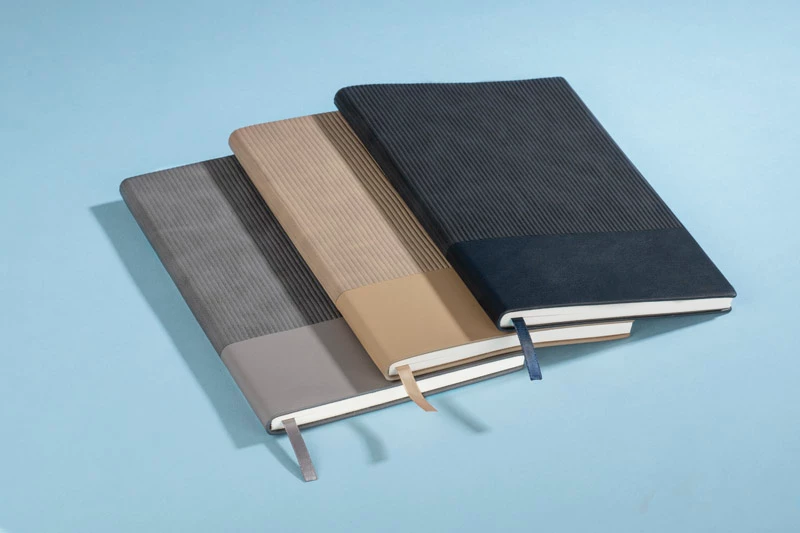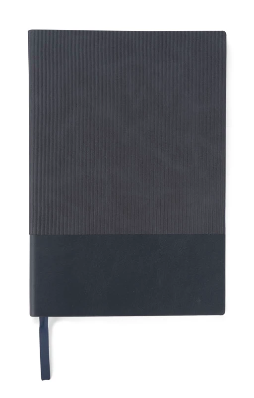 Notes FLAF w formacie A5 ma miękką okładkę łączącą materiał skóropodobny (PU) z imitacją sztruksu, co nadaje mu przyjemną, tekstylną fakturę. W środku znajduje się 80 kartek w kropki oraz praktyczna wstążka pełniąca funkcję zakładki.