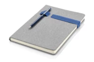 Notes HOLDI posiada bardzo ciekawą okładkę w kolorze szarym, wyglądem przypominającą lniany materiał. Zamykany jest za pomocą kolorowej gumki, która może służyć również jako miejsce na długopisy lub inne niezbędne przedmioty.