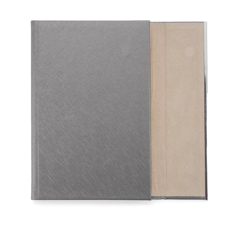 Notes wykonany z materiału skóropodobnego (PU) o ciekawym wzornictwie. Okładka zamykana na magnesy, wykończona z jednej strony blaszką w kolorze srebrnym. Notes INA to elegancki wygląd, solidne wykonanie i piękne wzornictwo. Wnętrze notesu wykonane z papieru o gramaturze 80 gram, 80 kremowych kartek w szare linie. Format A5.