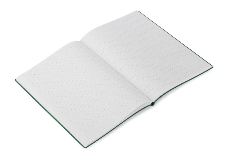 Kartki w notesie wyprodukowane zostały z papieru kamiennego. Taki papier jest wyjątkowo odporny na rozdarcia oraz na wilgoć. Posiada 80 kartek w kropki. Format A5.