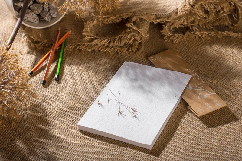 Notes MARIGOLD to wyjątkowy notatnik z okładką wykonaną z kwiatów bawełny i nagietka, zawierającą nasiona kwiatów stanowiące od 1 do 5% jej masy. Kartki wykonane są z papieru na bazie słomy pszennej o gramaturze 80 g/m², a w środku znajduje się 80 kartek w linię. Notes posiada także zdejmowalną zakładkę z papieru kraftowego.