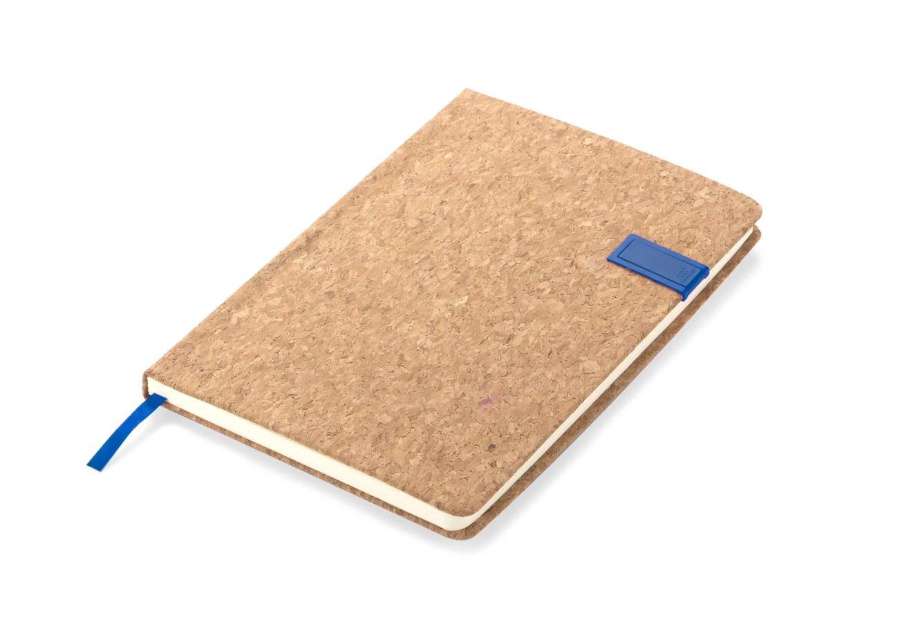 Notes w twardej korkowej oprawie. W okładce została umieszczona pamięć USB o pojemności 16 GB. Zawiera 80 kartek w linie. Kartki w notesie wyprodukowane z papieru.