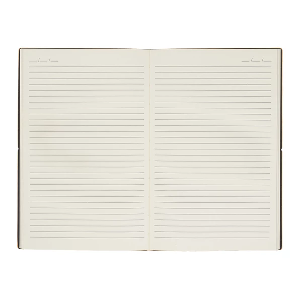 Notatnik w okładce ze skóry pochodzącej z recyklingu (75%), zamykany elastyczną gumką. Notatnik posiada tasiemkę do zaznaczania stron. 80 kremowych kartek w linie, gramatura papieru 80 g/m2.