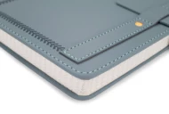 Notes SCRIBO w formacie A5 to elegancki notatnik z 104 kartkami w kratkę, idealny do codziennego użytku. Twarda oprawa z materiału skóropodobnego wyróżnia się dekoracyjnym tłoczeniem, przeszyciem oraz charakterystycznym paskiem z ozdobnymi nitami. Notes zamykany jest na wsuwany pasek, który zabezpiecza zawartość przed przypadkowym otwarciem. Dodatkowo wyposażony jest w tasiemkę do zaznaczania stron. Świetnie sprawdzi się jako gadżet reklamowy z możliwością znakowania.