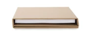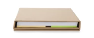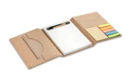 Modny, ekologiczny notes, który chowa w swoim wnętrzu linijkę, karteczki samoprzylepne, miejsce na wizytówki oraz długopis. Logo nadrukujemy na notesie.
