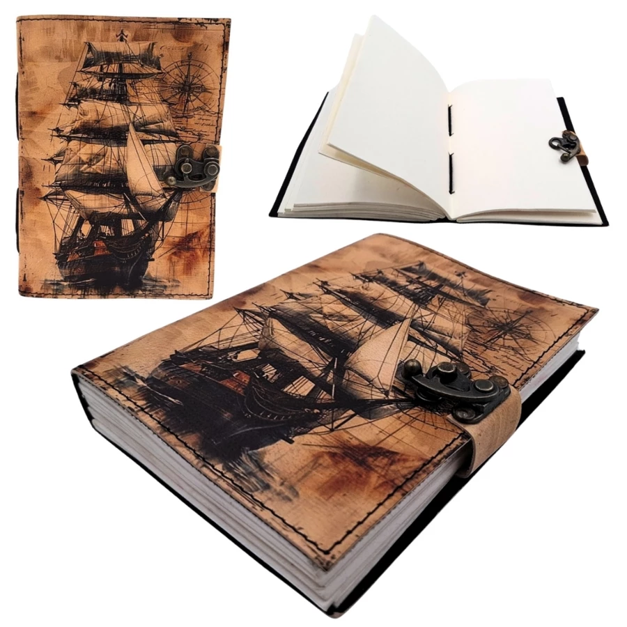 Notes Skórzany Marynistyczny Żaglowiec Retro - Prezent dla Żeglarza – AH11