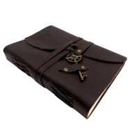 Zamknięcie z paskiem i kluczykiem: Dodatkowy element zabezpieczający prywatne notatki – retro pasek i stylowy metalowy kluczyk.