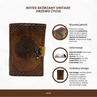 Notes Skórzany Vintage z Drzewem Życia – wyjątkowy notatnik w stylu retro dla miłośników detali.