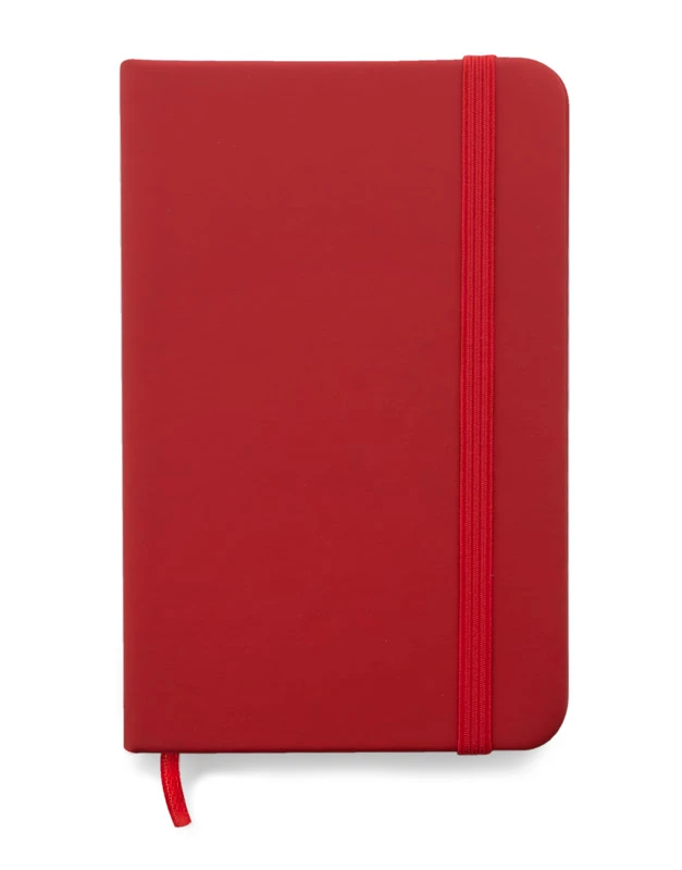 Gustowny notes A6 z kolorową gumką wykonany z materiału skóropodobnego (PU). Notes zawiera 80 kartek ecru w linie koloru pomarańczowego. Logo nadrukujemy na okładce.
