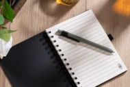 ARSEN to zestaw składający się z długopisu oraz notesu z twardą okładką i praktyczną spiralą. Dzięki 70 kartkom w linie, posiada mnóstwo miejsca na zapisywanie pomysłów, planów czy notatek z konferencji. Zestaw ARSEN został wyprodukowany z recyklingowanych kartonów po mleku.