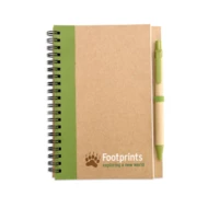 Notes B6 z papieru z recyklingu z dopasowanym długopisem. Podwójna spirala. 140 czystych stron z papieru z recyklingu (70 kartek). Dopasowany długopis z kartonu z recyklingu i biodegradowalnego plastiku. Niebieski tusz. Dopasowany elastyczny uchwyt na długopis. FSC MIX CREDIT | P7.1 | FSC-C213206