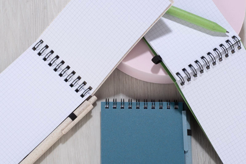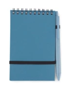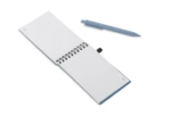 Notes TRESA z długopisem, kolorystyką dopasowanym do okładki. Długopis oraz okładka notesu wykonane są ze słomy pszenicznej. Notes na spirali, posiada 70 kartek w kratkę wykonanych z recyklingowanego papieru. Zamykany za pomocą gumki. Format A6. Wkład w długopisie w kolorze niebieskim.