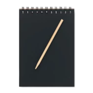 Notatnik do drapania z papieru kraft, zawierający 10 czarnych arkuszy papieru z recyklingu do drapania i drewniany długopis.