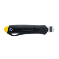 Nóż do tapet, wymienne ostrza, wykonany z ABS z recyklingu z certyfikatem RCS, łamane ostrze ze stali nierdzewnej, całkowita zawartość materiałów z recyklingu obliczona na podstawie wagi przedmiotu: 36%, produkt jest dostarczany z 1 ostrzem wewnątrz noża oraz 2 ostrzami zapasowymi, w pudełku papieru kraftowego z certyfikatem FSC® mix, ślad węglowy produktu: 0,5 kg CO2