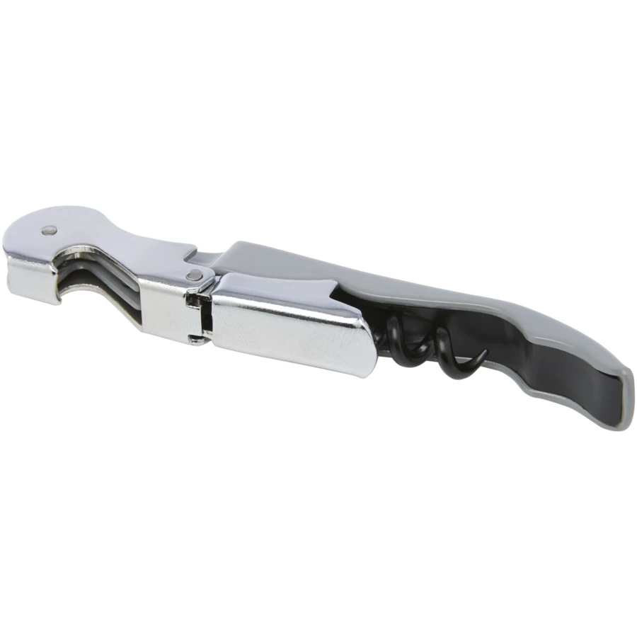 Nóż kelnerski ze stali nierdzewnej z kolorowym korpusem, wyposażony w korkociąg, przecinak do folii i otwieracz do butelek. Dzięki dwustopniowej konstrukcji można łatwo wyjąć korek z butelki.
