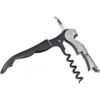 Metalowy nóż kelnerski z otwieraczem do butelek, obcinaczem do folii i korkociągiem z dwoma poziomami podnoszenia.