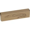 Mały nóż - finka, z ostrzem wykonanym ze stali nierdzewnej, drewnianą rączką i pętelką z rzemyka.