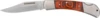 Składany nóż wykonany ze stali nierdzewnej, z drewnianą rękojeścią i blokadą bezpieczeństwa.
