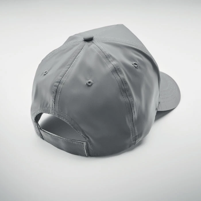5-panelowa czapka z daszkiem wykonana z odblaskowego poliestru 190T. 4 przeszyte oczka z zapięciem na rzep. Rozmiar 7 1/4.